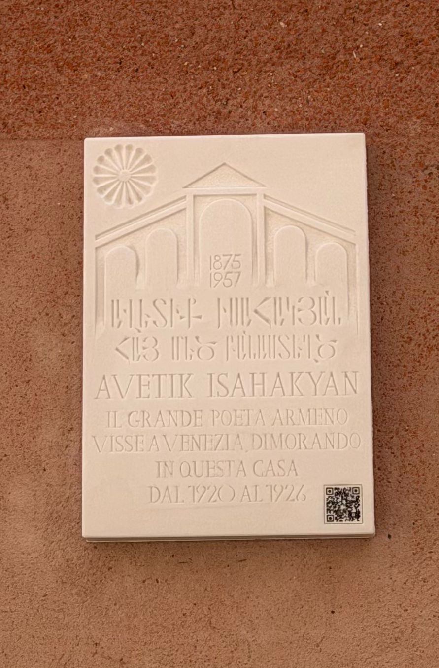 A Venezia è stata oggi inaugurata una targa commemorativa in onore del grande poeta armeno Avetik Isahakian, in occasione del 150° anniversario della sua nascita.
