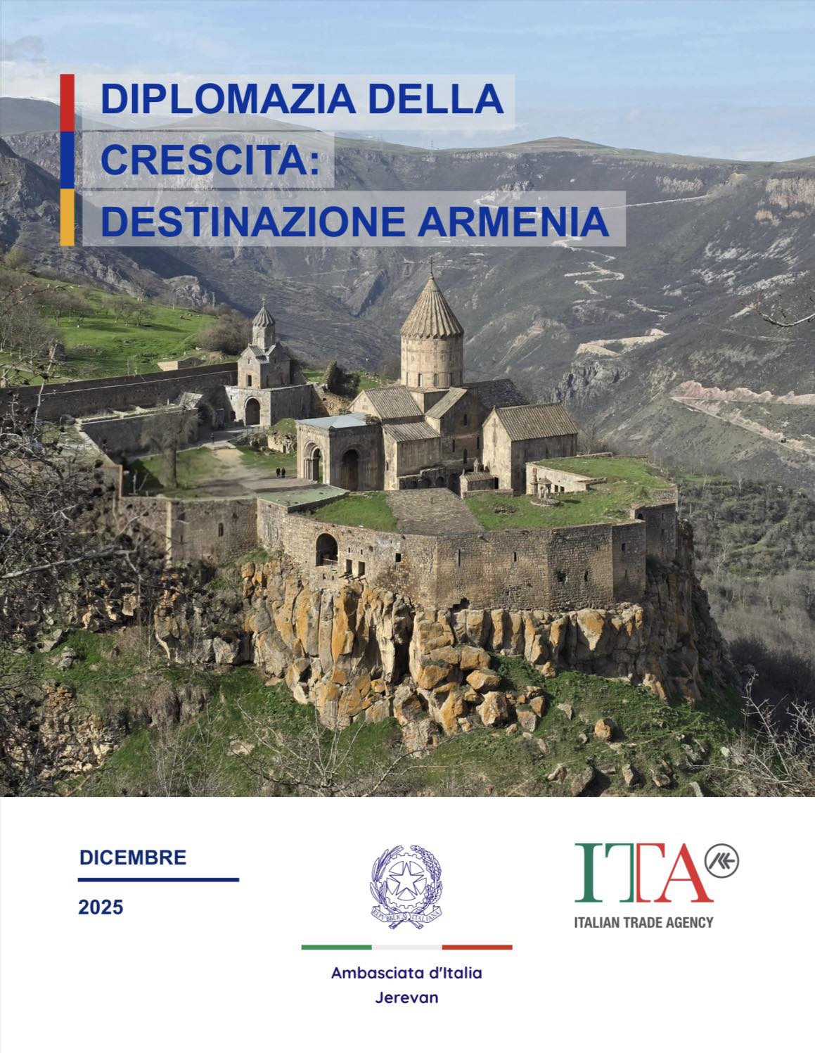 È stata pubblicata la Guida agli Affari “Diplomazia della crescita: destinazione Armenia” frutto del lavoro L’Ambasciata d’Italia a Jerevan e del contributo fondamentale dell’Ufficio ICE-Agenzia competente.
